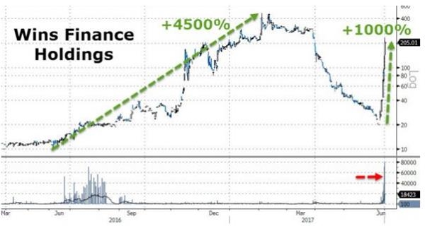 數月前,小型中資企業穩盛金融控股集團(Wins Finance Holdings Inc)(追蹤納斯達克指數,且是羅素2000指數的成分股)在納斯達克上市交易首日股價飆升4500%,隨后在彭博社報道該公司這一不可思議的漲幅后,公司股價一瀉千里。