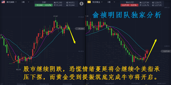 技術(shù)面分析,從盤面上看,周線級別上看,美指會持續(xù)收陰呈現(xiàn)弱勢走勢,均線將有死叉表現(xiàn),中軌支撐94.9告破,將迎來開閘放水的下跌過程;反觀黃金在美指受到加息提振的半年時間內(nèi),持續(xù)空頭放量,觸底形態(tài)已經(jīng)完好,K線連續(xù)收陽,均線有彎頭金叉的走勢,并且中軌阻力1225已經(jīng)告破,表明黃金正處在多頭的強勢上行周期中,后市表現(xiàn)值得期待。