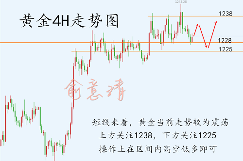 3、技術面:關于黃金,意清在昨天就很明確的分析過,黃金上漲暫告一段落后,必定會有一個大級別的震蕩需求,并且昨日是走震蕩的第一筆下,在1235附近布局的空,1228附近完美離場!不過黃金雖短線跌破5日均線,但在10日均線處受到支撐,且下方20日,60日均線仍在強力支撐金價。多頭排列仍將有力推動金價走向1250以及更高。4小時級別1216-1218低點只要不破,在1216上方我們看適度偏多是沒問題的。黃金在其上方橫盤至少會再次沖擊1238,突破后則到達第二目標1244新高。1小時突破1244開始的下跌較為順暢,不排除反彈較為艱難,上方我們可以適度關注1239下方的阻力。但主趨勢仍將偏多,總趨勢1220低點守住,仍看漲。而今日的操作思路是,早盤守住看反彈!還不知今日該如何把握交易的,請及時聯系我!
