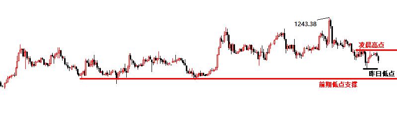 1,早間依托凌晨高點1231-2下跌,那么這個位置是典型的分水嶺,歐盤突破1231-2一線,美盤回撤一定是多,看二次震蕩上升。