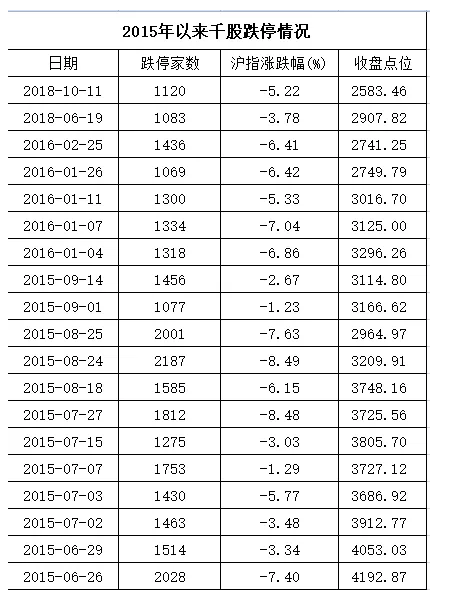 而2015年以來,A股市場已經連續多次出現千股跌停的現象,今日之前的最近一次為6月19日千股跌停。