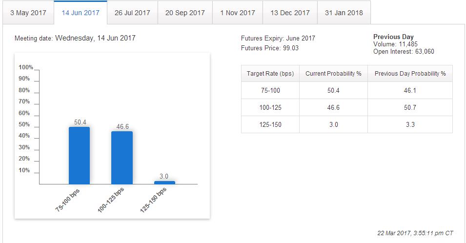 耶倫在上周三加息后的新聞發布會上給出謹慎的利率指引,這令投資者幾乎排除了在5月份的下次會議上加息的可能性,而6月加息的可能性也降至50%左右。