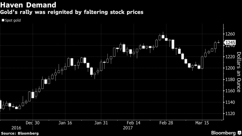 環球外匯3月23日訊--周三(3月22日)現貨黃金攀升至三周高位,盤中最高上漲至1251.39美元/盎司,收于1248.10美元/盎司,上漲3.60美元,因投資者愈發懷疑特朗普承諾的稅改計劃無法實現,美元跌至七周低位,公債收益率驟降。