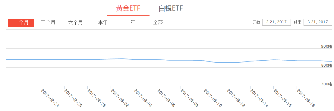 值得關注的是,全球最大黃金上市交易基金(ETF)—SPDR Gold Trust3月20日持倉較上周五減少0.46%,至830.25噸。上周五持倉量為834.10噸,連續三天減持后,黃金ETF持倉回吐過去一周增倉,降至3月10日來最低。