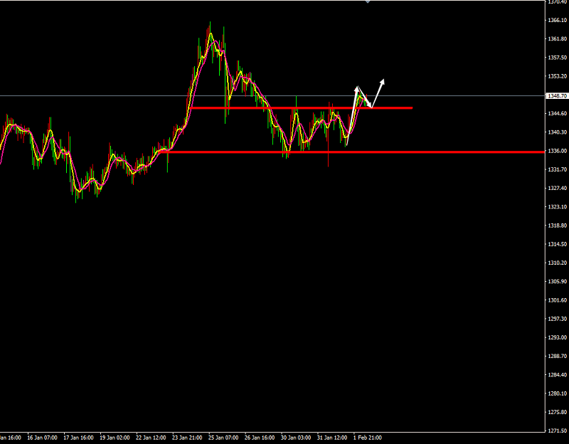 1、回撤1345-1346附近做多,止損1342,目標看1352-1354附近;