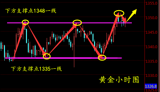 ????三、以4小時來做日內(nèi)短線布局,短線偏向于多頭,昨天探底回升后破高強勢收線,亞盤期間小幅回撤修正短線形態(tài),午盤激進可以在1346-1347附近做多,因為上方空間有反彈測試1356附近的可能性,下方空間反而不確定,如果歐盤也走弱走回撤,那么歐盤就不參與布局。