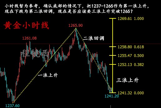 總結完這些,還是得看技術面,小時線上來看,1237-1266可以看成是第一浪上漲,現在是第二浪的回調,現在雖說1237和1241沒有實質性雙底的關系,但是黃金在1266-1259下降趨勢線處沒有受阻,說明了多頭力度尚可,今日有望延續反彈節奏,突破上方阻力還是關鍵,大趨勢鏡西看多頭方面,黃金V型反轉的一波大抄底就要來臨,利潤也將是很豐富,前期的多單也能得到解套,鏡西團隊已經在1243部署中線多單沒能跟上第一波的可以等待第二波,具體會臨盤通知。以上僅個人觀點,參考為主。