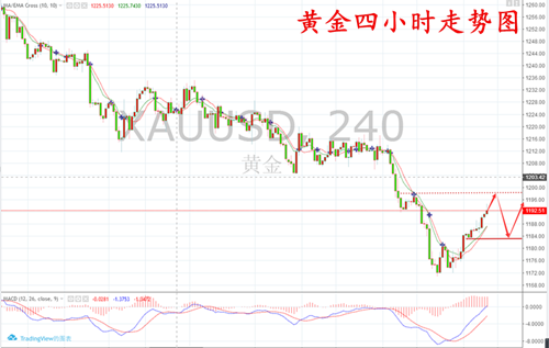 日線已經有三天沒有創新低了,探底十字星+2連陽并突破5日均線,正在靠近10日均線。今日10日均線在1196附近,可以適度關注阻力。我們樂觀預計此次黃金會成功突破10日均線,上方最重要壓力是20日均線。20日均線是未來多空分水嶺,只有成功突破此線我們未來才看漲,否則維持大格局震蕩思路。4小時不知不覺已經反彈30美金了,幅度頗大,大有反轉之意,1160-1182是第一反彈浪,1182-1172.5是正常回調,1172.5-1190是第三反彈浪,第三反彈浪正在延長中。4小時高點是1199,成功突破此高點則漲勢還將繼續,小幅受阻則多空還需反復拉鋸。60倍均線在1196.5,綜合前高1199和日線10日均線阻力,我們認為日內最重要阻力是1196。1小時周一震蕩上升,跳空高開突破1182確立日線反彈節奏,白天最高測試1190,美盤回調不破1182,止跌在1185凌晨又反彈新高。可以說當前升勢較為穩健,多頭不破1182.5低點,仍將繼續攀升至1196處。