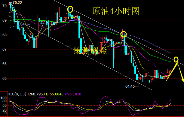 昨日油價(jià)錄第三連陽,呈窄幅震蕩上揚(yáng),目前從日線上分析,MA5、MA10死叉向下運(yùn)行,布林帶縮口,K線位于布林中軌下方下行通道內(nèi),上方于60日線處形成壓力,KDJ三線粘合呈中性,MACD快慢線二次死叉,日K線走勢(shì)偏空頭。4小時(shí)上,行情整體處于下行通道內(nèi),油價(jià)下方64.4有支撐,上穿布林帶中軌線,但原油從68.37的回落至66.63附近后,上漲的動(dòng)能不足。MACD紅色能量柱放量,快慢線金叉擴(kuò)散,KDJ金叉擴(kuò)散,MA5/MA10/MA20三線金叉。綜上所述,策測(cè)解金建議原油操作以先多后空操作,上方關(guān)注65.8,66.2阻力,下方關(guān)注64.7,64.4支撐。行情瞬息萬變,策略具有時(shí)效性,實(shí)時(shí)操作以盤中為準(zhǔn)。