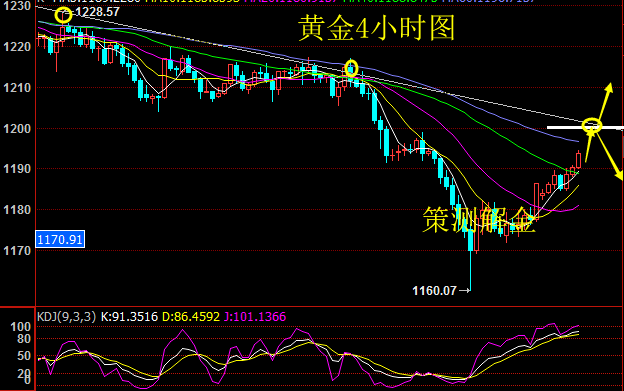 昨日金價(jià)取第三連陽,整體在符合預(yù)期漲勢(shì),盤中1283多單止盈6美金,操作一手盈利600美金,恭喜盤中伙伴們!目前從日線圖分析,可以看到金價(jià)日?qǐng)D布林帶開口下行,MA5移動(dòng)平均線與MA10移動(dòng)平均線呈死叉開口下行,蠟燭收于布林中下軌間MA5移動(dòng)平均線附近。趨勢(shì)指標(biāo)MACD快慢線位于零軸下方呈死叉下行放緩綠色動(dòng)能有所縮量,黃金空方暫緩表現(xiàn)表現(xiàn)出一定觸底反彈勢(shì)能。4小時(shí)圖上,布林帶三軌朝下縮口運(yùn)行,MA5移動(dòng)平均線與MA10移動(dòng)平均線呈金叉近粘合態(tài)朝上運(yùn)行,趨勢(shì)指標(biāo)MACD快慢線位于零軸下方交金叉上漲紅色動(dòng)能逐步放量,雙線低位金叉顯示短線有觸底反彈需求,因此,短線黃金行情還有進(jìn)一步上漲勢(shì)能。綜合看來,黃金價(jià)格會(huì)迎來一波反彈,故而,今日黃金價(jià)格下方重點(diǎn)關(guān)注1184,1182一線支撐,上方關(guān)注1198,1200一線阻力,操作上策測(cè)解金建議回調(diào)做多為主,高空為輔。行情瞬息萬變,策略具有時(shí)效性,實(shí)時(shí)操作以盤中為準(zhǔn)。
