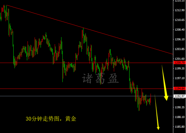 自從上星期金價上漲1214位置后受阻,隔夜形成單邊下跌后開始,我一直維持逢高看空金價思路,天天建議高空為主,目前證明我的思路是正確的,當前金價一度跌到1189位置受到支撐,出現(xiàn)小幅反抽震蕩,首先我們思路應(yīng)該還是以反彈空為主,空頭初步判斷應(yīng)該還沒有結(jié)束,整體結(jié)構(gòu)還是空,現(xiàn)在上方阻力分別1195以及1201,如果金價維持弱勢格局,1195之下估計都會延續(xù)下跌的可能,如果是這樣,日內(nèi)金價都可能往1180一線去測試,當然整體空頭防守為1201位置,因此我們要密切關(guān)注盤中做空機會;