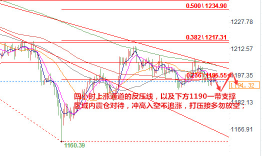 2、下方在1189-1190附近輕倉做多,止損1185,目標(biāo)看1198-1200