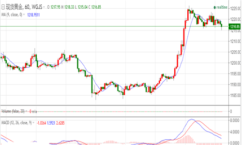 黃金方面昨日黃金開盤在1223.94一線,開盤后空頭占據上風,金價出現下跌,最低打到1217.52一線,隨后出現反彈,最高打到1221.62一線,接著金價沒有上漲而是出現回調,經過幾波下跌后,最低打到1215.78一線,最后金價反彈1219.47后出現回調1216.15后再次上漲,最高打到1223.34,隨后進入震蕩走跌,最低打到1217.54一線,收線在1217.83。