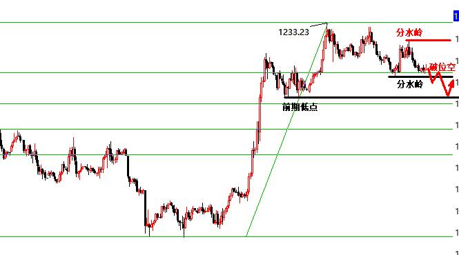 在今日方面,我們還是要用到分水嶺和時間原則,一樣的道理。昨日低點1220一線,凌晨延續慢跌,今日就看日內能否破位1220,但不要緊張,即便破位1220,下方也需要當作震蕩來看一次。1215一線低點,仍然是多頭防守位和進場位。因此,操作上,昨日1227一線空單繼續持有。空倉激進1225繼續空,保守破位1220后反抽1221-1222空,看1215-1216一線。同時,如果下方測試1214.5-1215.5做多,損1210,目標1222-1223一線。短期震蕩看待。